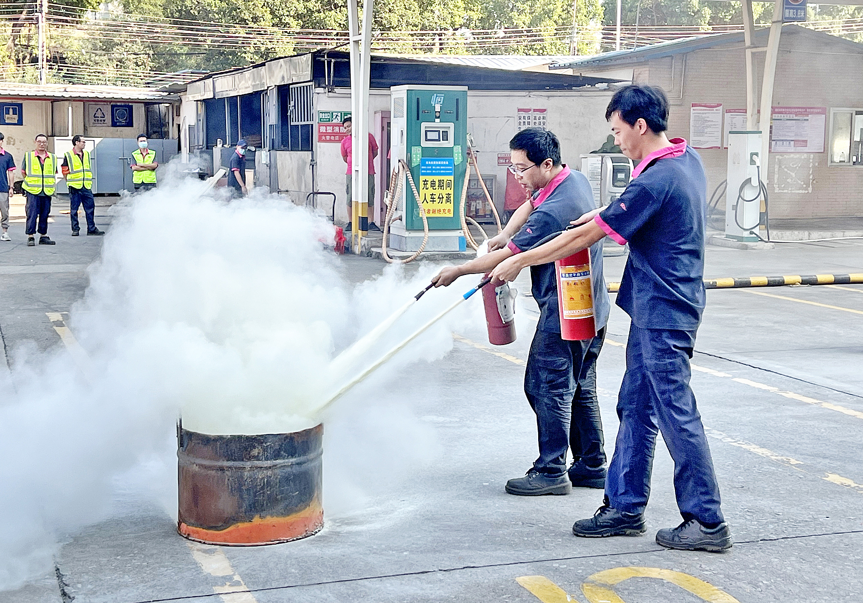 11月12日,維修分公司攜手天河區交通局、天河區黃村街道應急辦及黃村西社區居委會(huì )在黃村車(chē)間開(kāi)展消防應急演練。結合生產(chǎn)及近期重點(diǎn)消防事件,演練設置純電動(dòng)公交車(chē)充電自燃起火處置、火災現場(chǎng)車(chē)輛緊急疏散處置及消防器材實(shí)操等環(huán)節。演練開(kāi)始,模擬一輛正在充電的公交車(chē)突然車(chē)底冒出濃煙,充電工確認電池倉冒煙后,迅速切斷充電樁電源,拔出充電槍?zhuān)焖偈褂脠?chǎng)內消防栓水帶射水降溫,同時(shí)撥打“119”報警;當班負責人立即組織人員拉起警戒線(xiàn),指揮移車(chē)工第一時(shí)間疏散受火源威脅最大的車(chē)輛,然后將火災現場(chǎng)停放車(chē)輛迅速有序開(kāi)離場(chǎng)地。純電動(dòng)公交車(chē)充電自燃起火及現場(chǎng)車(chē)輛緊急疏散的全流程應急救援處置增強了本次演練實(shí)效,讓員工對應急處置流程入腦入心。