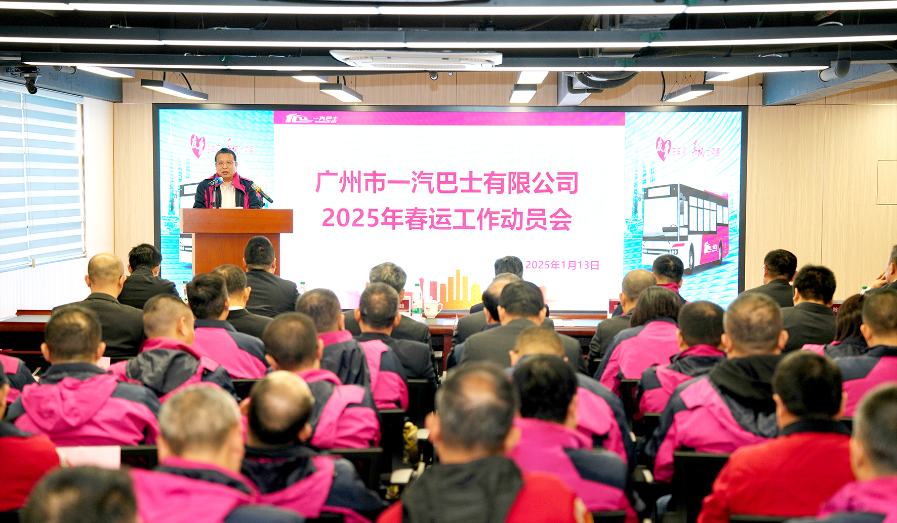 會(huì )上,首先由公司副總經(jīng)理陳清華對2025年春運形勢以及突出風(fēng)險進(jìn)行深入分析,宣讀《廣州市一汽巴士有限公司2025年春節旅客運輸工作方案》,圍繞營(yíng)運調度、安全服務(wù)、技術(shù)信息、宣傳策劃、綜合保障等五個(gè)板塊,對公司春運工作進(jìn)行動(dòng)員部署,要求各單位、各部門(mén)以飽滿(mǎn)的熱情、昂揚的斗志、嚴謹的作風(fēng)投身春運大考,讓公司2025年工作平安、順利起步。