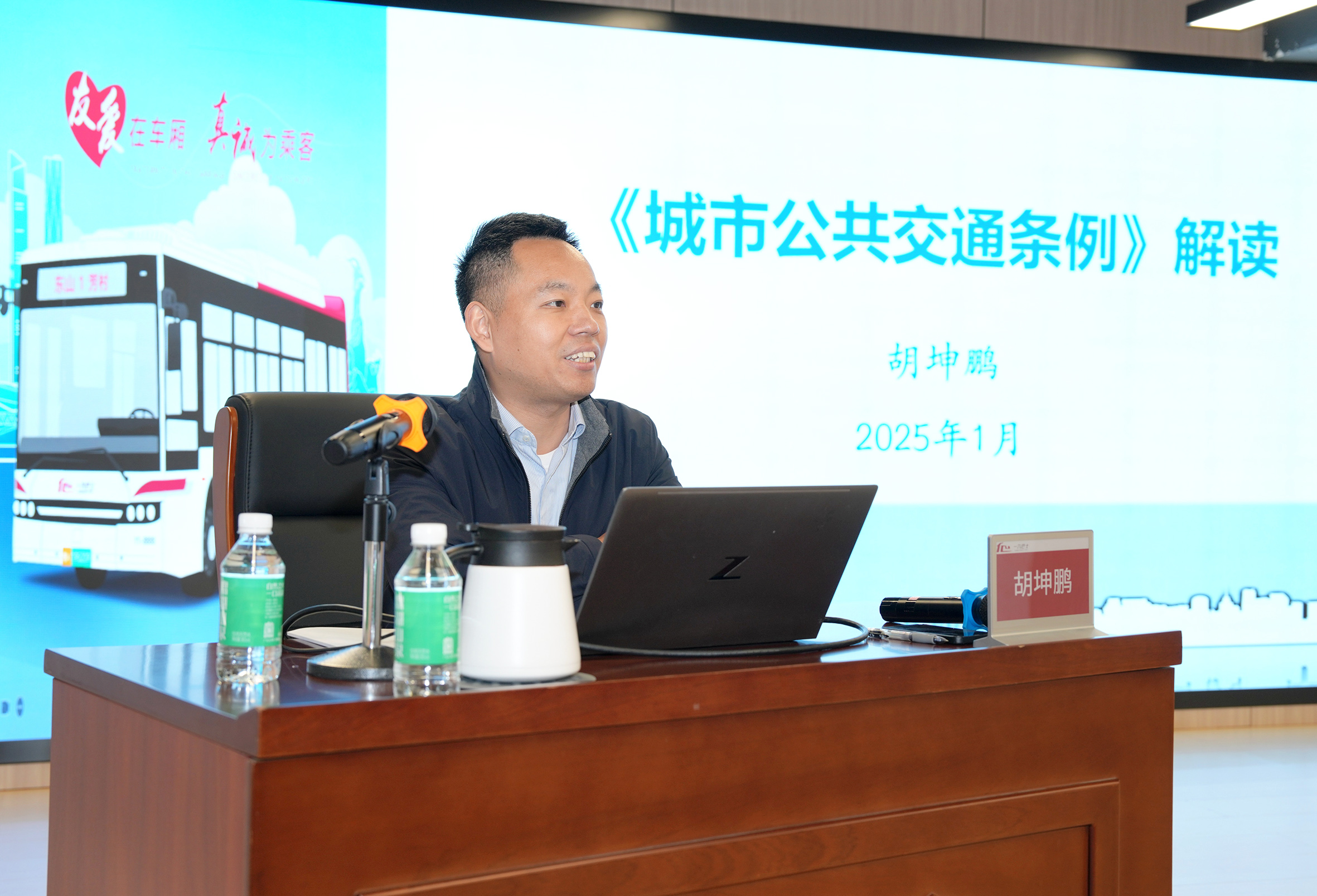1月2日下午,公司舉辦了《城市公共交通條例》宣貫培訓。公司領(lǐng)導、中層管理人員、助理、主管和科長(cháng)以及其他管理人員共計約180人通過(guò)現場(chǎng)會(huì )議與視頻會(huì )議相結合的形式參加了培訓。會(huì )議邀請到了廣東交通職業(yè)技術(shù)學(xué)院副教授胡坤鵬,為公司深入解讀了《條例》起草的背景與意義、核心內容與要義,分享了草擬廣東省公共交通條例核心內容,以及對公交行業(yè)未來(lái)發(fā)展趨勢的觀(guān)點(diǎn)與思考。下一步,各部門(mén)、單位要緊跟國家法規、政策的變化,認真細讀《條例》,及時(shí)調整工作模式和經(jīng)營(yíng)策略,學(xué)以致用,知學(xué)并進(jìn),實(shí)現公司高質(zhì)量發(fā)展,努力做到“創(chuàng )收、減虧、提服務(wù)、去庫存”。
