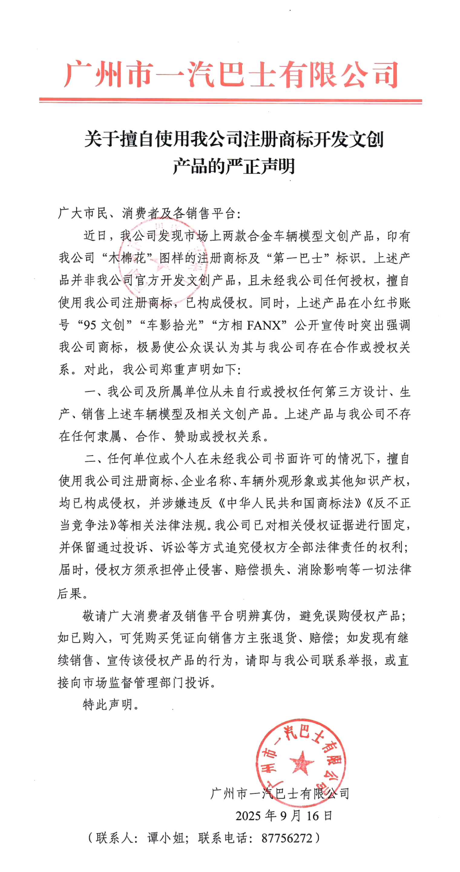 關(guān)于擅自使用我公司注冊商標開(kāi)發(fā)文創(chuàng )產(chǎn)品的嚴正聲明