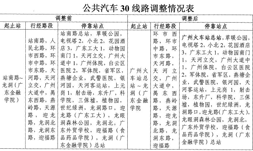 經(jīng)客管處批準,同意分公司30路線(xiàn)從站南路總站調整至廣州火車(chē)站總站,具體??空军c(diǎn)見(jiàn)附件。調整時(shí)間從2010年2月12日首班車(chē)起實(shí)施。
